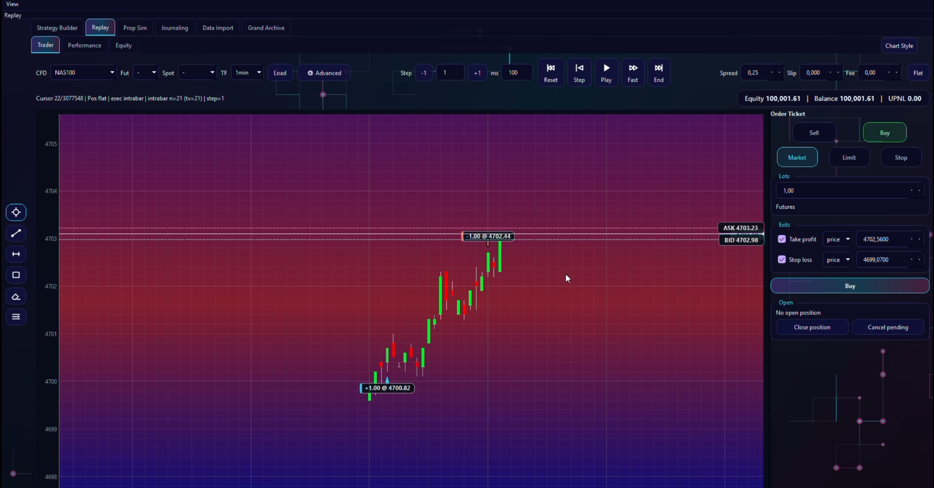 - Replay-first chart environment